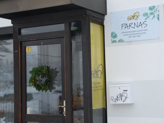 Adventni venček letos krasi tudi vhod v center Parnas v Robu. S skupnimi močmi smo ga izdelale na Parnasovi četrtkovi čajanki – priložnostno delavnico je vodila Majda Tekavec.