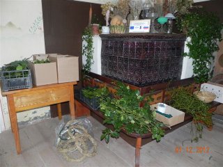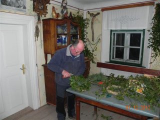 Izdelane venčke smo zložili na mizo v kašči, kjer jih je blagoslovil gospod župnik iz Podkuma.