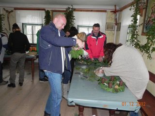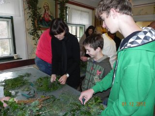 Na Medvedovi domačiji v Podkumu, kjer oživljajo dediščino Zagorja, so na delavnici 1. 12. 2012 izdelovali adventne venčke. Takole so sporočili: