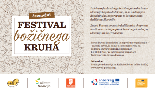 Program festivala od 15.11.2018 do 6.1.2019 36 festivalskih dogodkov – razstav, delavnic in drugih aktivnosti nosilcev dediščine priprave božičnega kruha v