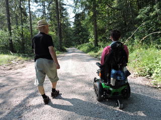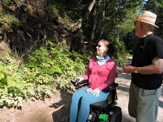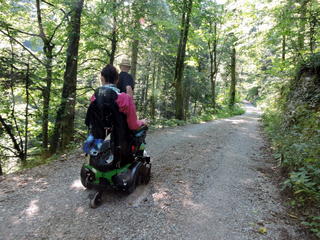 Z Beti Lunder sva se že dolgo dogovarjali, da opraviva skupen obisk Geološke poti v Kobilji curek – in v naravi preveriva, v kolikšni meri je dostopna tudi ljudem na invalidskih vozičkih.