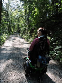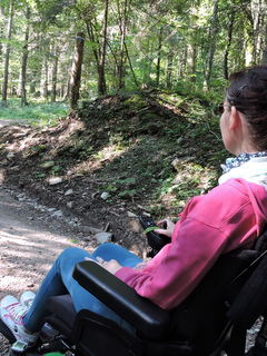 Beti ima mišično distrofijo, to je gensko obolenje, pri katerem postopno slabijo mišice. Diagnozo so ji postavili pri 11-ih letih, voziček pa je postal njen spremljevalec pred 15 leti po kompliciranem zlomu stegnenice. Na izletu po geološki poti sta jo spremljala sestra Mateja in oče, ki nas je s kombijem zapeljal do izhodišča geološke poti. Čeprav večinoma svetujemo začetek poti pri geološkem otoku pred Parnasom, sva se z Beti odločili, da 800 m dolgo pot od centra do izhodišča zaradi sončnega dneva raje premagamo z avtom.