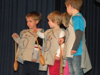 Zanimive so tudi priprave na tako predstavo. Mentorica Irena Hren je povedala, da so intenzivno pripravljali predstavo le zadnji teden, prej pa se veliko pogovarjali o urah, se gibali in plesali kot ure. Tudi kostume so vzgojiteljice pripravile same – in poslikali kar odpadne materiale.