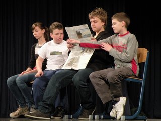 Tudi druga predstava igralcev z OŠ Martina Krpana je bila nadvse dinamična – v njej ni manjkalo niti pravih gimnastičnih podvigov.
