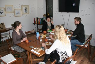 Raili je bila navdušena nad gostujočo razstavo Ptice skrite v papirju avtorice Marije Prelog. Članice študijskega krožka so tisti dan pripravljale jabolčni in skutni štrudelj, kar je bilo kot nalašč tudi za pogostitev.