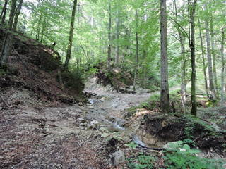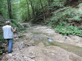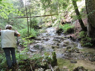 Sledimo strugi potoka in zapustimo udobno gozdno cesto. A tudi v tem del so gozdarska vozila utrdila pot, nam pa olajšala dostop – še za nekaj deset metrov.
