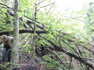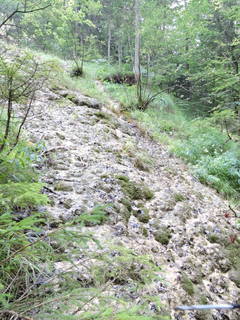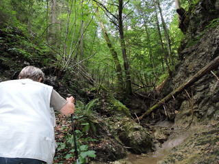 Vzpenjanje ob strugi je na dveh mestih malce težavnejše, saj pot zapirajo med lanskim žledom podrta drevesa. Vendar se prehod najde, in dokazuje, da je pot obljudena.