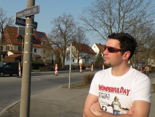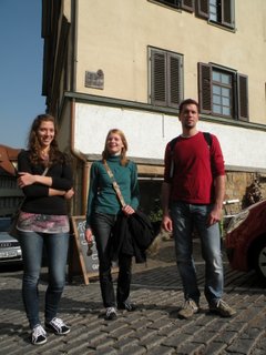Na sliki je 3/4 naše ekipe (od leve proti desni): Tadeja Dejak, Martina Tekavec in Rok Borštnik, vsi trije so lani sodelovali v projektu Tu malajne ni vse proč palu, letos pa delujejo kot Parnasovi prostovoljci. Naša prva postaja je bilo univerzitetno mesto Tuebingen, kjer je bilo treba pred nekdanjo Morhartovo tiskarno, v kateri je Trubar tiskal prvo slovensko knjigo, napraviti spominski posnetek.