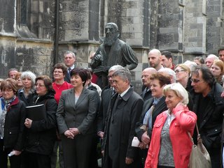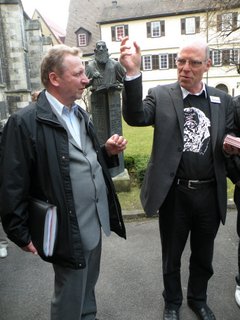 Za kulturno doživetje posveta je s programom skrbel dr. Zvone Štrubelj, slovenski duhovnik iz Stuttgarta, ki že 11 let deluje v Nemčiji. Delavnicam in predavanjem je sledil obisk evangeličanske cerkve in biblijskega zavoda v Bad Urachu, kjer je kot ravnatelj deloval Primož Trubar. Na sliki levo je dr. Zvone Štrubelj, ob njem pastor evangeličanske cerkve iz Bad Uracha (pozoren obiskovalec lahko opazi, da pastor nosi majico s podobo Trubarja s Trubarjeve domačije!)
