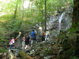 Malce pod slapom je ob strugi lepo viden lehnjak, ki nastaja skoraj pred našimi očmi. Zagnana mlada raziskovalka je želela sama preizkusiti, ali bo kislina lehnjak raztopila ali ne.
