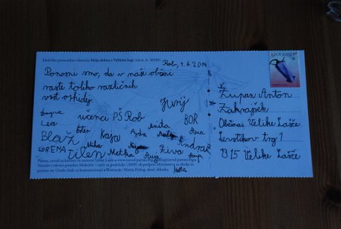 Le kaj tuhtajo mlade glavice? Napisali so razglednico, na katero so potem nalepili še znamko …