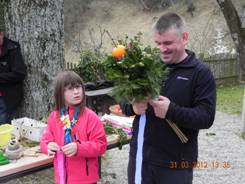 Tako mladi kot starejši so z zanimanjem prisluhnili Mojci Zupan, ki je orisala značilnosti izdelave cvetnonedeljskih butaric na Slovenskem, različna poimenovanja ter njihovo vlogo, Rudi Zupan pa je predstavil potrebne sestavine (“lesove”) in vodil izdelavo butaric.