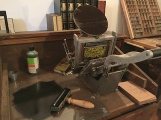 Sledi prehod v tiskarno s knjigoveznico. Pri urejanju tiskarske zbirke je društvu veliko pomagal mojster Janez (Manufaktura mojster Janez), med zadnjimi pridobitvami v zbirki sta tudi bombažni papir in papir iz usnjenih ostankov.