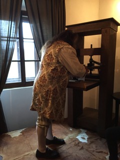 Najbolj navdušenim opazovalcem je mojster izdelal še voščeni pečat in jim omogočil, da so si na rekonstrukciji Gutenbergove stiskalnice 15. stoletja odtisnili še Trubarjevo podobo. Le to odtiskuje na ročno izdelan papir iz lastne papirniške delavnice, ki jo postopoma ureja v pristavi Barbove graščine.
