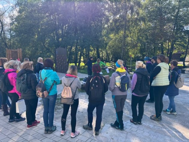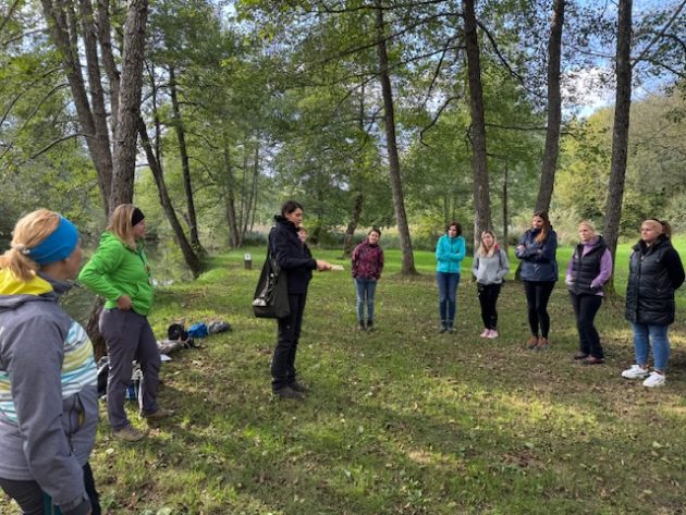 Delo na terenu na Poti modrega bleščavca in pristopi gozdne pedagogike z Uršo Vilhar in Katarino Flajšman z Gozdarskega inštituta Slovenije.