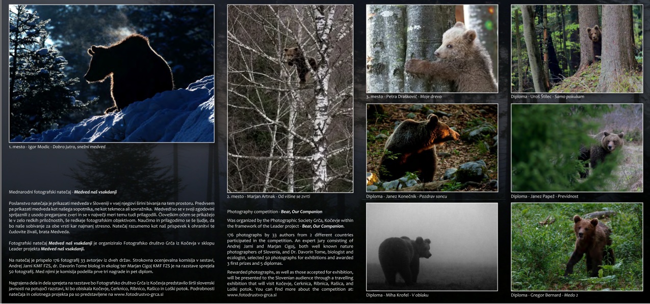 Fotografsko društvo Grča je izpeljalo fotografski natečaj na temo rjavega medveda v Sloveniji. Rezultat natečaja jefotografska razstava, z gostovanji v Kočevju (22.5.), Cerknici (21.6.), Ribnici (28.8.), Velikih Laščah (5.10.) in v Loškem Potoku (28.11.). Na dveh fotografskih naravoslovnih delavnicah v Kočevju (19.5.) in v Mišji dolini (23.6.) so se dodatno izobraževali ljubitelji naravoslovne fotografije. Preko spletnih strani sta dosegljiva virtualni katalog z razstave in multivizija.